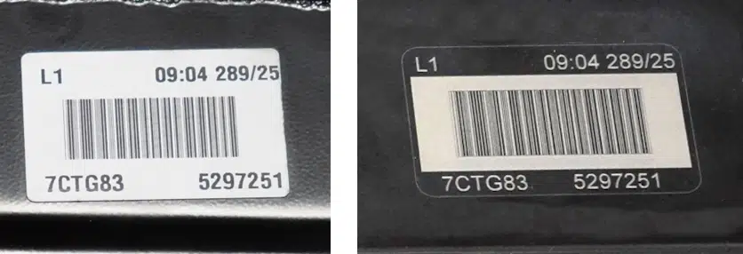 Before and after: initial label / final laser marking
