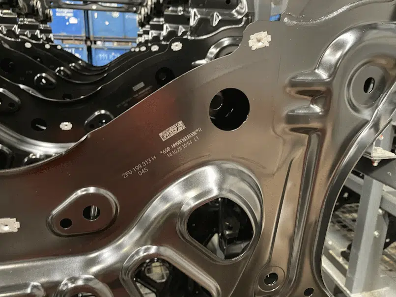 By replacing labeling with permanent laser marking, this manufacturer secured the traceability of its crossmembers in the Body in White environment, while reducing overall costs and preserving the existing production process.