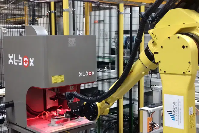 SIC MARKING은 자동 도어가 있는 XL-Box 스테이션의 설치를 제안했습니다. 도어를 통해 로봇이 부품을 배치하고 기계에서 부품을 꺼낼 때 로봇 스테이션과 쉽게 통합할 수 있습니다.