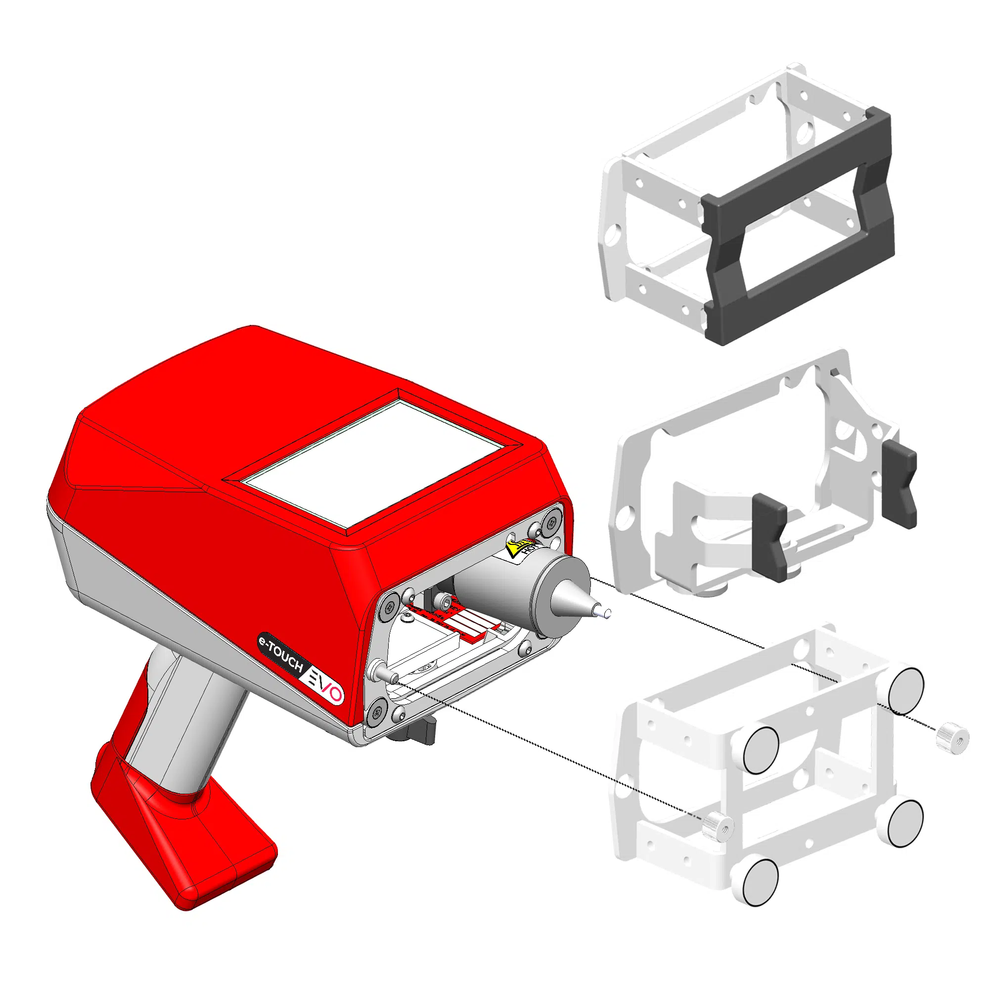 e-TOUCH EVO는 세 가지 교체 가능한 지지면을 갖추고 있습니다: 미끄럼 방지 표면, 축소 및 조절 가능한 면, 그리고 자석식 면입니다. 도구 없이도 신속하게 교체할 수 있어 대형 부품, 원통형 부품 또는 작은 표면의 부품 등 모든 형상에 즉시 적응할 수 있습니다.